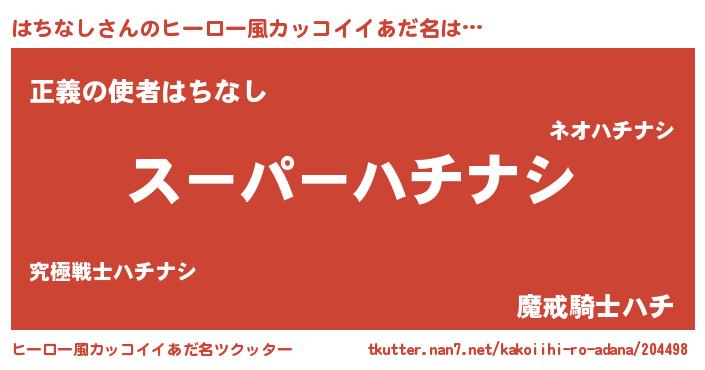 | 男性向けラノベタイトル風あだ名 | 『はちなしの憂鬱』『ハチナシスレイヤー』 |