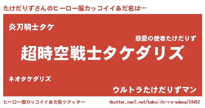 | 女子向けラノベタイトル風あだ名 | 『たけだりずなんてお断りですっ。』 |