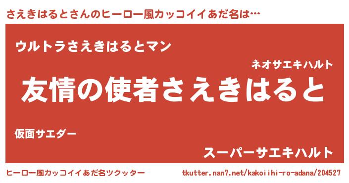 | 男性向けラノベタイトル風あだ名 | 『おまえをオタクにしてやるから、俺をさえきはるとにしてくれ! 』 |