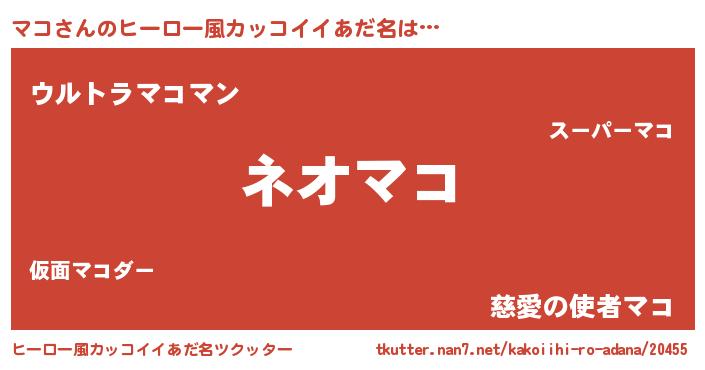 | 女子向けラノベタイトル風あだ名 | 『異世界で失敗しない100のマコ』 |