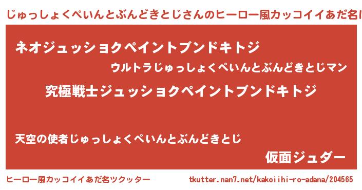| 意味不明あだ名 | 『自称じゅっしょくぺいんとぶんどきとじ』 |