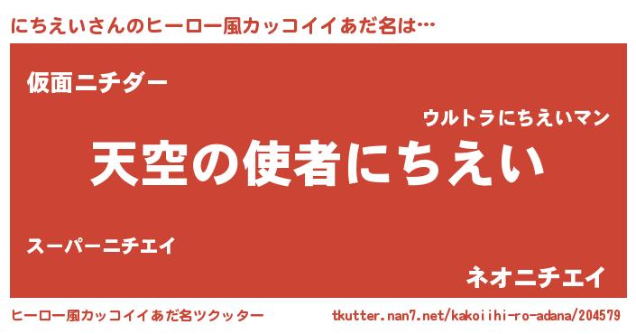 | 男性向けラノベタイトル風あだ名 | 『ノーゲーム・ノーニチエイ』 |
