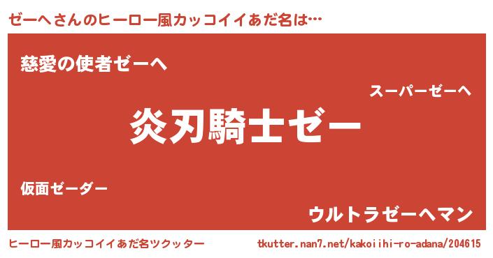 | 男性向けラノベタイトル風あだ名 | 『ゼーヘの嫁は女の子じゃないと思った?』 |