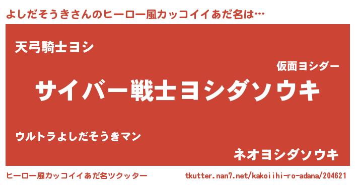 | ヘコむあだ名 | 『よしっ子』『よしだそうき(爆)』 |