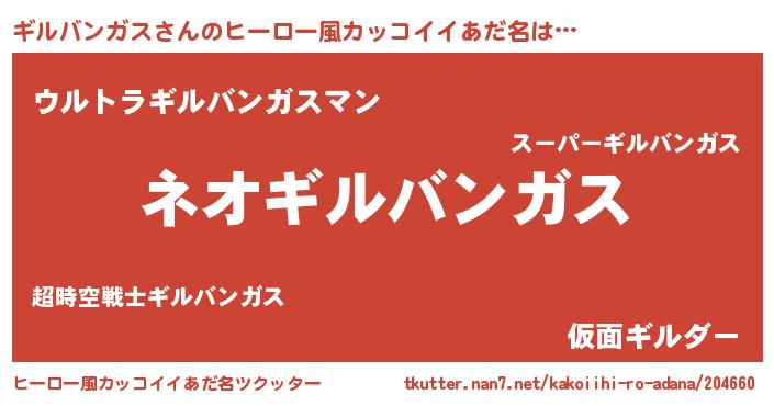 | 意味不明あだ名 | 『永久保存ギルバンガス』 |