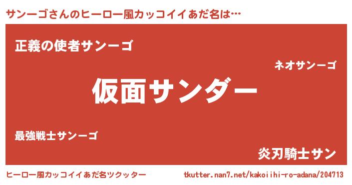 | 意味不明あだ名 | 『住所不定無職サンーゴ(43歳)』 |