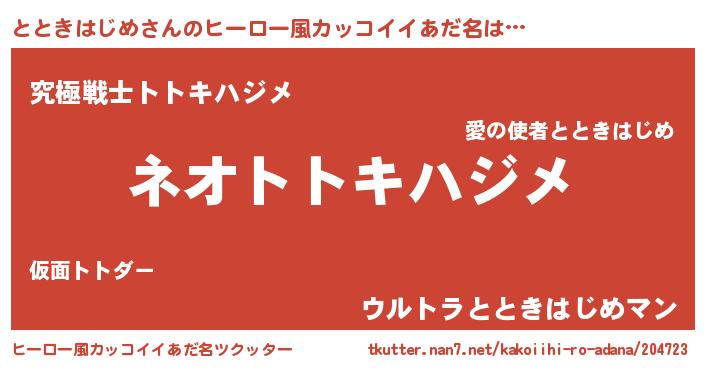 | 男性向けラノベタイトル風あだ名 | 『とときはじめという概念が存在しない退屈な世界 』 |