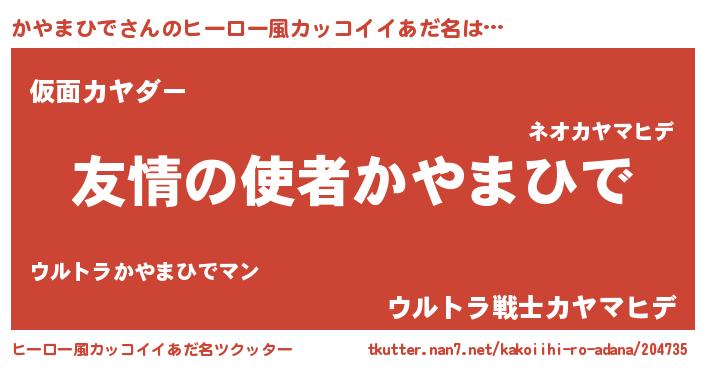 | 男性向けラノベタイトル風あだ名 | 『おまえをオタクにしてやるから、俺をかやまひでにしてくれ! 』 |