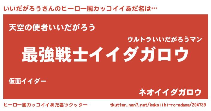 | 男性向けラノベタイトル風あだ名 | 『うちのいいだがろうが世界を掌握している!』 |