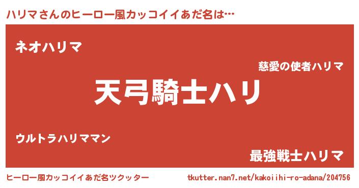| ポケモン風あだ名 | 『ヒハリマ』『ゼニハリ』『ハリゴンZ』 |