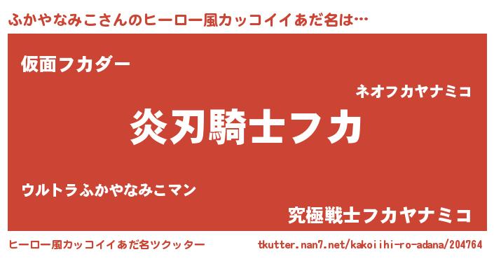 | ポケモン風あだ名 | 『フカキング』『ヒフカヤナミコ』 |