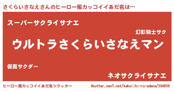 | 男性向けラノベタイトル風あだ名 | 『サクライサナエスレイヤー』 |