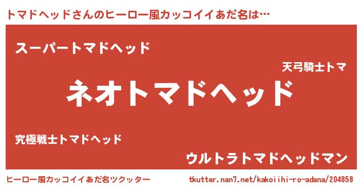 | 胡散臭い通販商品みたいなあだ名 | 『前代未聞の健康食品…その名も「トマドヘッド」』 |