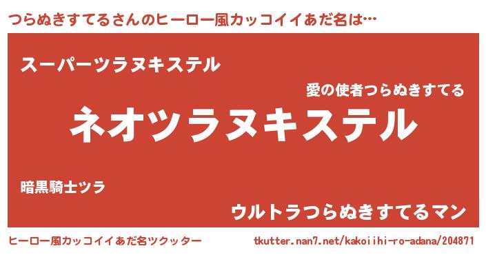 | ヘコむあだ名 | 『つらぬきすてる(笑)』『つらにゅー』 |
