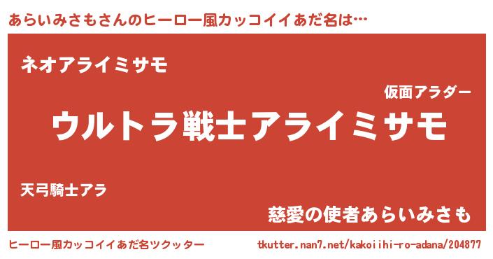 | ヘコむあだ名 | 『あらいみさも(苦笑)』『あらっ子』 |