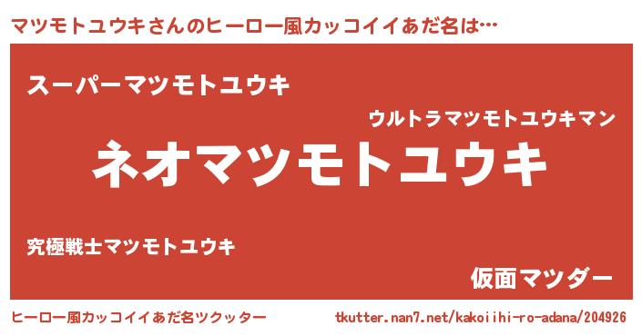 | ヘコむあだ名 | 『マツモトユウキ(遠い目)』『マツもー』 |