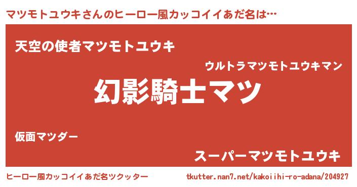 | ポケモン風あだ名 | 『メロマッツ』『ヒマツモトユウキ』 |