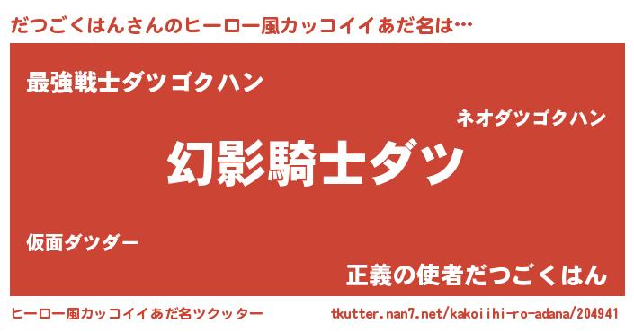 | ポケモン風あだ名 | 『ヒダツゴクハン』『ダツセウス』 |