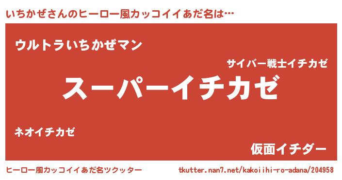 | 男性向けラノベタイトル風あだ名 | 『イチカゼスレイヤー』『いちかぜの憂鬱』 |
