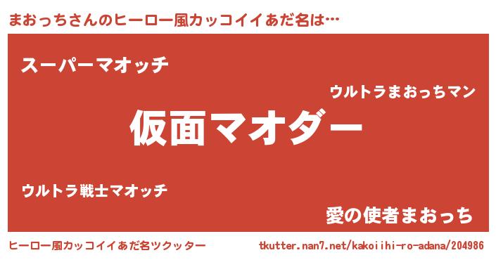 | 男性向けラノベタイトル風あだ名 | 『この素晴らしい世界にまおっちを!』 |
