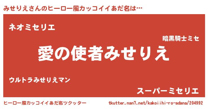 | ヘコむあだ名 | 『みせりえ(苦笑)』『みせふぇ~』 |