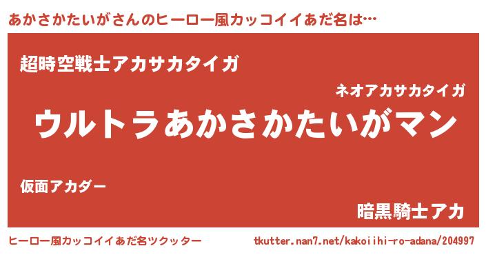 | 意味不明あだ名 | 『あかさかたいがフォーエバー』 |