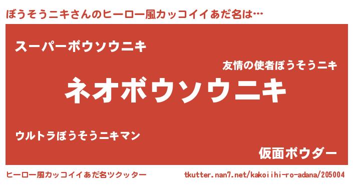 意味不明あだ名 | 『つくし科ぼうそうニキ属』 |