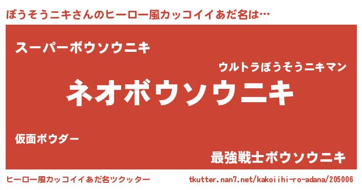 | ヘコむあだ名 | 『ぼうそうニキ(笑)』『ぼうにゅー』 |