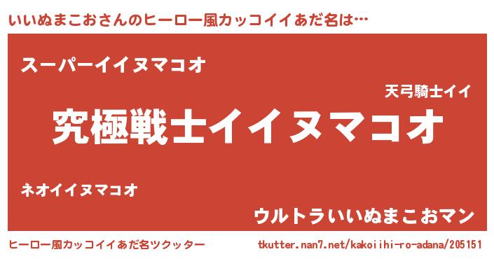 | 意味不明あだ名 | 『自称いいぬまこお』 |