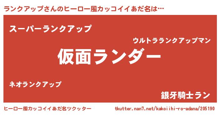 | 胡散臭い通販商品みたいなあだ名 | 『あなたにだけ特別に提供する世界で10本だけ現存している希少なブランデー…その名も「ランクアップ」』 |
