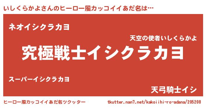 | 意味不明あだ名 | 『自称いしくらかよ』 |