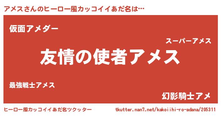 | 男性向けラノベタイトル風あだ名 | 『おまえをオタクにしてやるから、俺をアメスにしてくれ! 』 |
