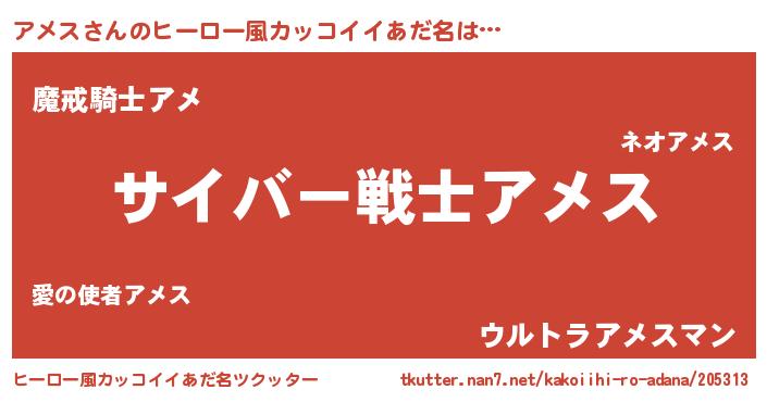 アメスさんのヒーロー風カッコイイあだ名をツクッター!