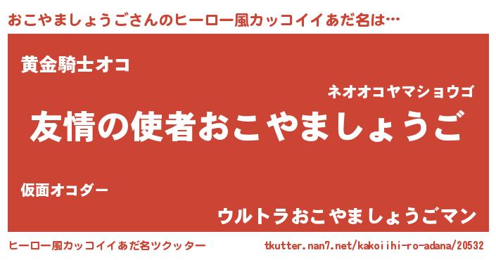 男性向けラノベタイトル風あだ名 | 『おまえをオタクにしてやるから、俺をおこやましょうごにしてくれ! 』 |