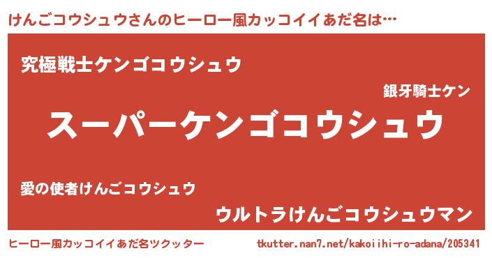 | 男性向けラノベタイトル風あだ名 | 『けんごコウシュウの憂鬱』 |