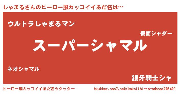 | 男性向けラノベタイトル風あだ名 | 『しゃまるの憂鬱』 |