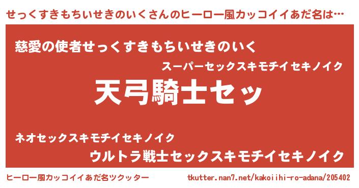 | ポケモン風あだ名 | 『ヒセックスキモチイセキノイク』 |