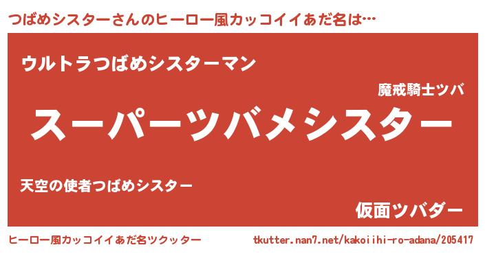 | 胡散臭い通販商品みたいなあだ名 | 『必ず成功するブレスレット…その名も「つばめシスター」』 |