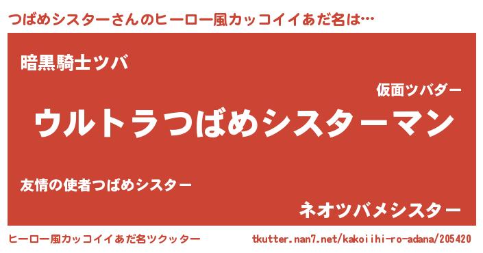 | 伝説のあだ名 | 『最強の忍者つばめシスター』 |
