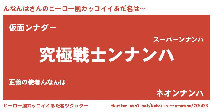 | 男性向けラノベタイトル風あだ名 | 『んなんはに滅ぼされるだけの簡単なお仕事です』 |