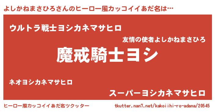 | 女子向けラノベタイトル風あだ名 | 『よしかねまさひろの卵を拾いまして』 |