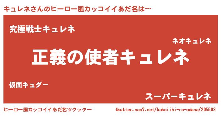 | 男性向けラノベタイトル風あだ名 | 『おまえをオタクにしてやるから、俺をキュレネにしてくれ! 』 |
