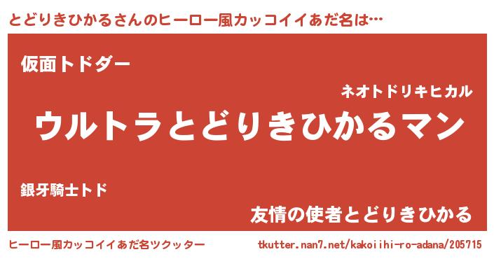 | 男性向けラノベタイトル風あだ名 | 『うちの娘の為ならば、俺はもしかしたらとどりきひかるも倒せるかもしれない。』 |