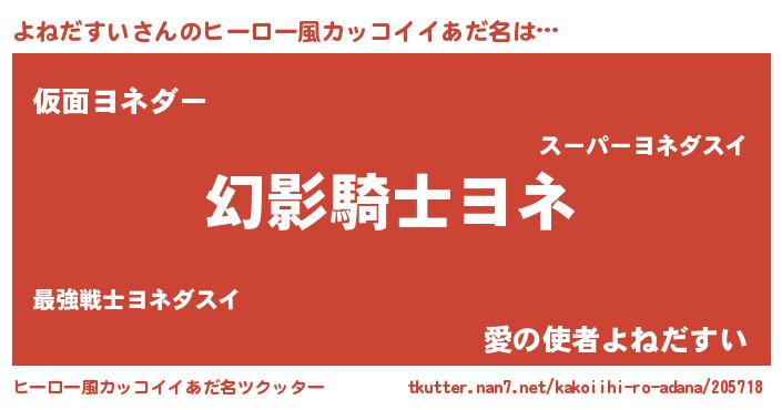 | 男性向けラノベタイトル風あだ名 | 『よねだすいの嫁は女の子じゃないと思った?』 |