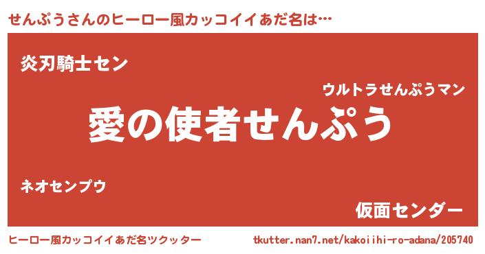 | 男性向けラノベタイトル風あだ名 | 『転生したらせんぷうだった件』 |