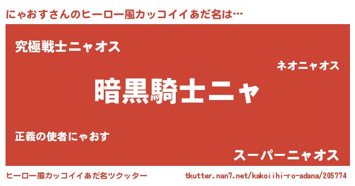 | 女子向けラノベタイトル風あだ名 | 『にゃおすは平凡を望む』 |