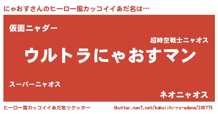 | 男性向けラノベタイトル風あだ名 | 『緋弾のニャオス』『魔弾の王とにゃおす』 |