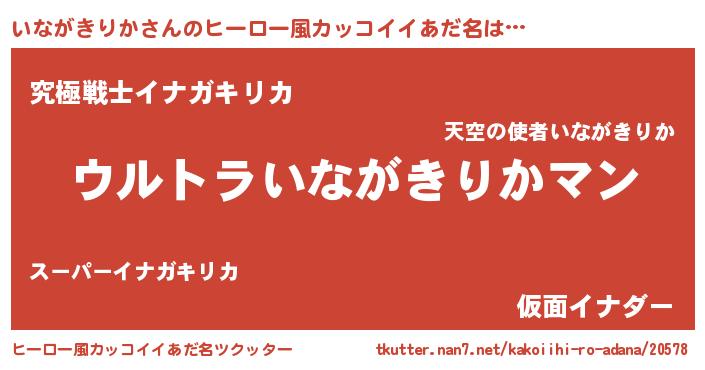 | 女子向けラノベタイトル風あだ名 | 『いながきりかの雑貨屋さん』 |