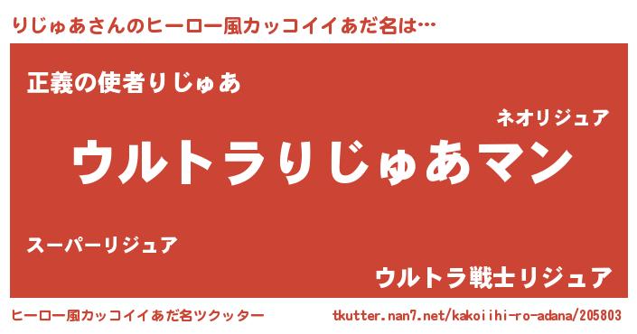 | 女子向けラノベタイトル風あだ名 | 『りじゅあの雑貨屋さん』 |