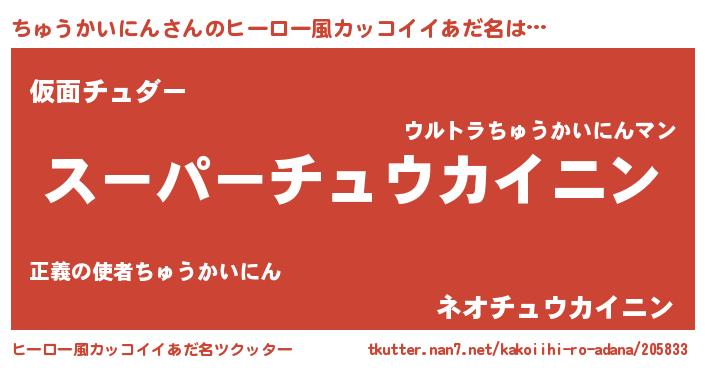 | ヘコむあだ名 | 『ちゅにー』『ちゅうかいにん(震え声)』 |